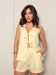 862 Conjunto 8012 feminina blusa elastica atras com faixa / short com bolso tecido luis twill VER OFERTA