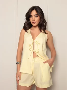 862 Conjunto 8012 feminina blusa elastica atras com faixa / short com bolso tecido luis twill VER OFERTA 862 Conjunto 8012 feminina blusa elastica atras com faixa / short com bolso tecido luis twill VER OFERTA