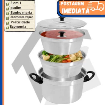 913 Panela Multiuso 3 em 1 forma de pudim banho maria cozimento a vapor escorredor VER OFERTA 913 Panela Multiuso 3 em 1 forma de pudim banho maria cozimento a vapor escorredor VER OFERTA